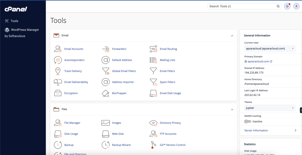 cPanel provides you with a wide range of hosting features and a high level of control to keep your online properties running smoothly. The intuitive user interface and flexible functionality are suitable for both first-time and experienced users.